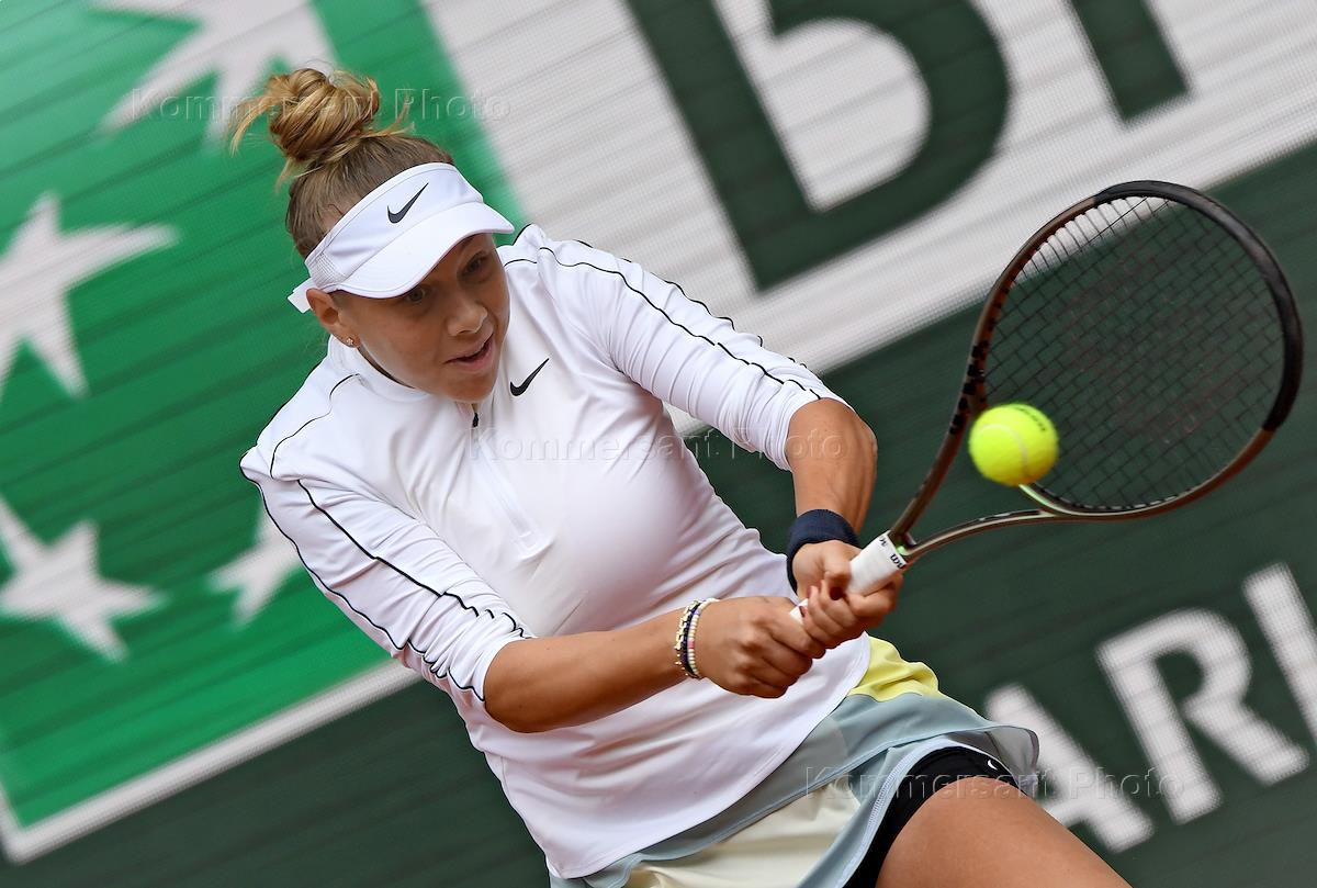 Чемпионат Франции по теннису "Ролан Гаррос" 2022 (Roland Garros 2022). Четвертый круг. Белорусская теннисистка Александра Соснович во время матча с итальянской теннисисткой Мартиной Тревизан.