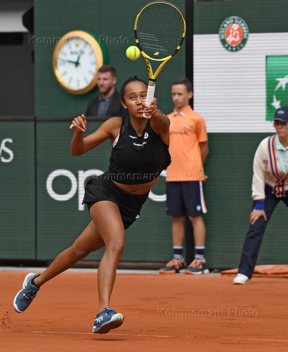 Чемпионат Франции по теннису "Ролан Гаррос" 2022 (Roland Garros 2022). Четвертый круг. Канадская теннисистка Лейла Фернандес во время матча с американской теннисисткой Амандой Анисимовой.