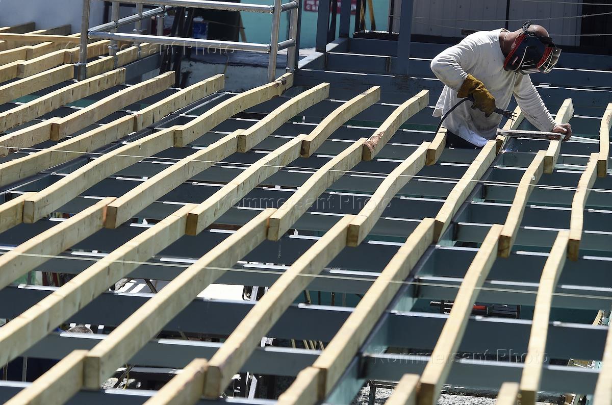 Views of Alushta. Genre photography. Preparation of beaches for the holiday season. Construction of beach tents.