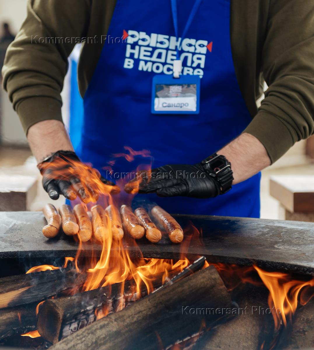 Gastronomic festival "Fish week 2022". Cooking sausages for visitors at the festival site in the 16th microdistrict of Zelenograd.