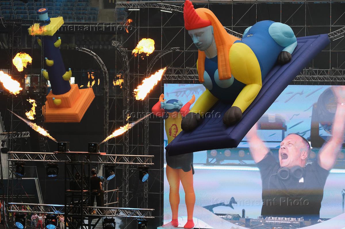 Petrovsky Assemblies 2.0 festival at the Gazprom Arena stadium. Genre photography. Decorative figures on the territory of the stadium during the festival.