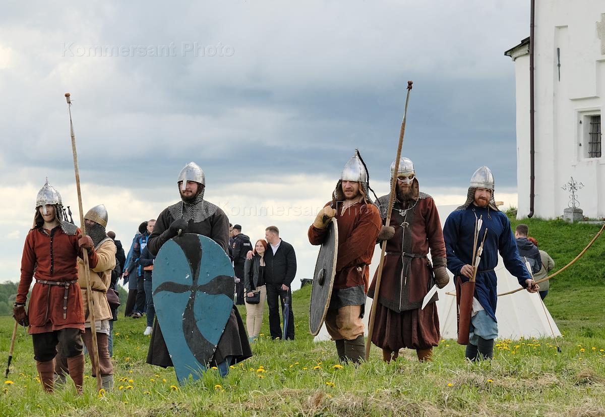 Festival of the early medieval culture of Russia "Isaborg-2022" on the territory of the Turov settlement. Participants during the festival.