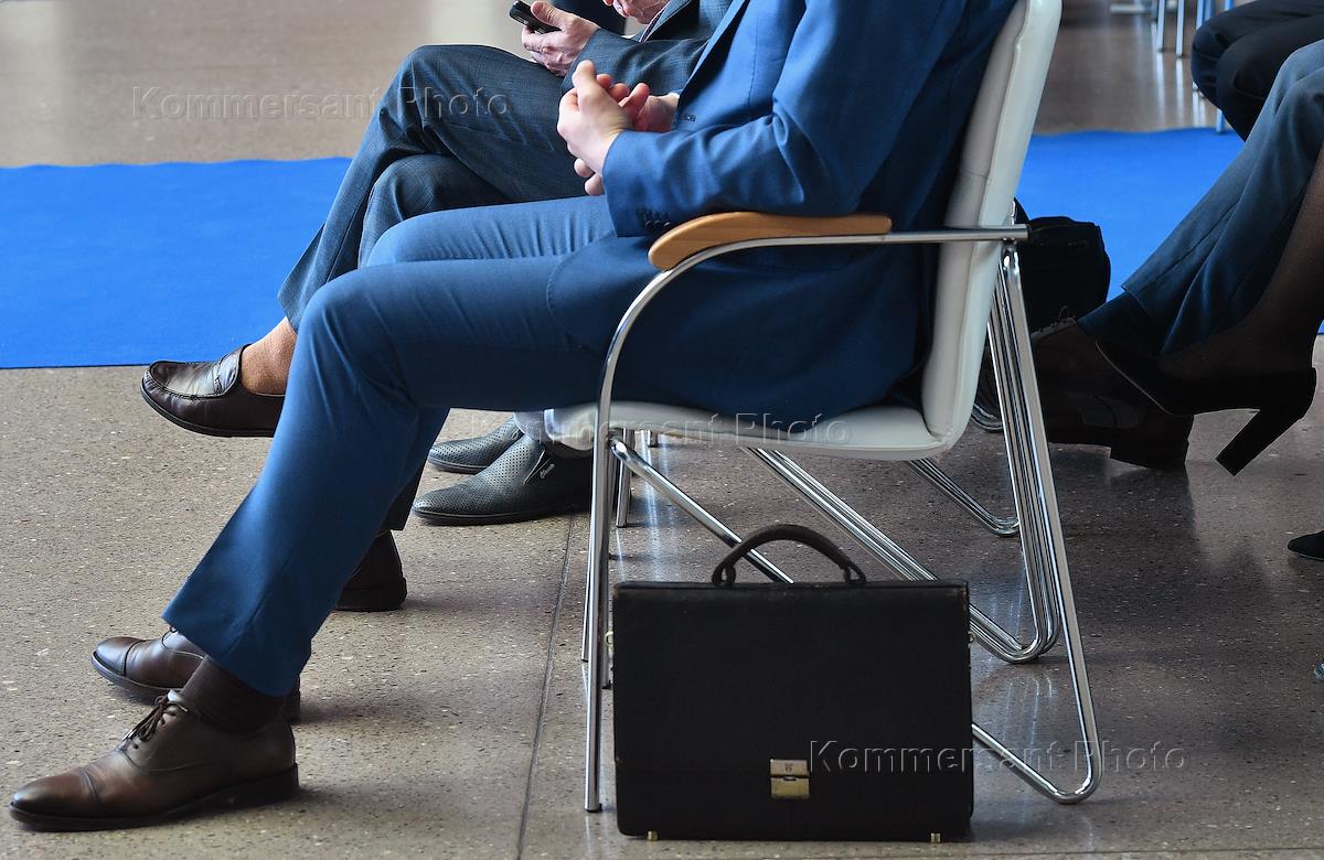 Solemn ceremony of presenting certificates of supporting educational organizations of higher education for the rocket and space industry at the Cosmonautics and Aviation Center at VDNH. Genre photography. Participants of the ceremony before the start.