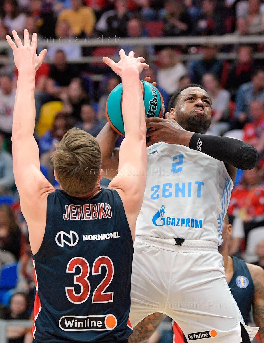 VTB United Basketball League. The final. Match between the teams of CSKA (Moscow) - "Zenit" (St. Petersburg) at the stadium "Megasport". Zenit team player Alex Poythress (right) during the match.