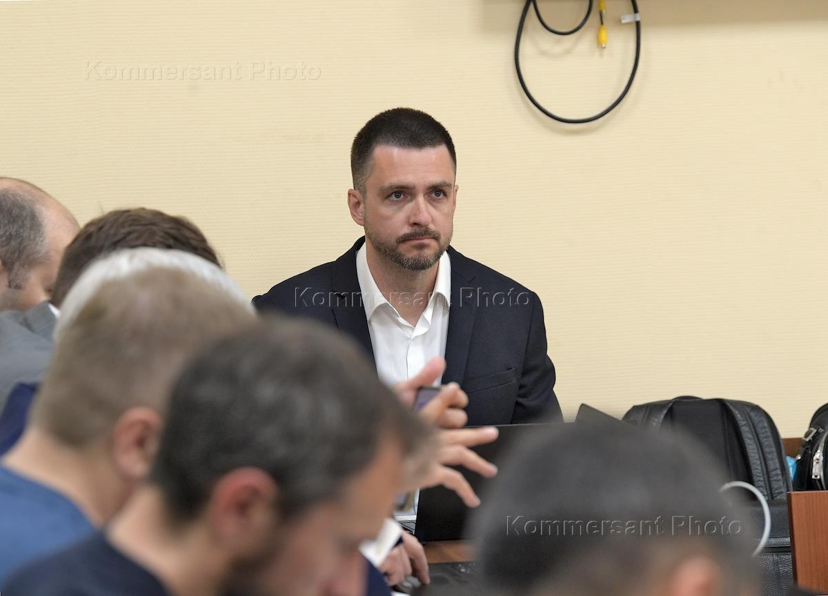 Consideration of the criminal case of Alexander Lezhnev, former Deputy CEO for Security of NRTB JSC and his subordinate Alexander Zolotykh, Ivan Shumigai, a former FSB officer of Russia, and Alexander Vashurin, Deputy Prosecutor of the 231st Military Prosecutor's Office of the Moscow Garrison, who are accused of attempting to steal from JSC "National Radio Engineering Bureau" associated with the execution of the state defense order, about 100 million rubles, in the 235th garrison military court. Former Deputy CEO for Security of JSC NRTB Alexander Lezhnev during a court session.