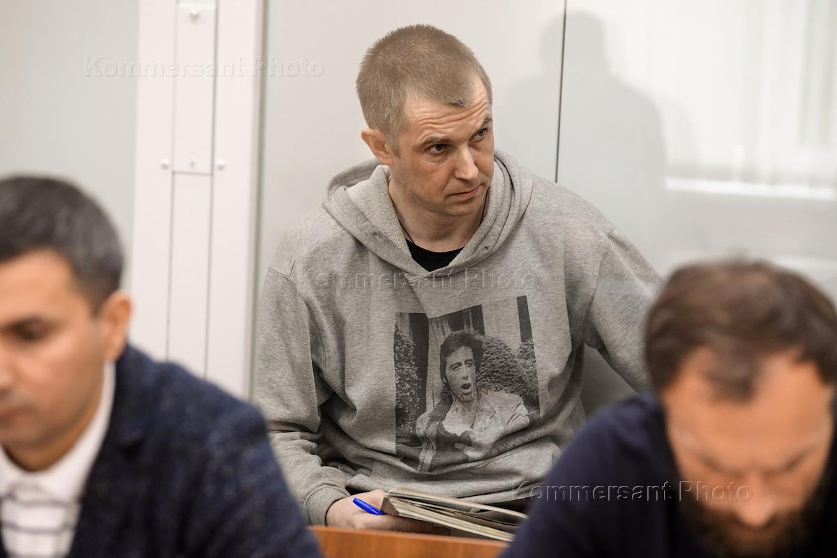 Рассмотрение уголовного дела бывших заместителя генерального директора по безопасности АО НРТБ Александра Лежнева и его подчиненного Александра Золотых, бывшего сотрудника ФСБ России Ивана Шумигая и заместителя прокурора 231-й военной прокуратуры Московского гарнизона Александра Вашурина, обвиняемых в попытке хищения у АО "Национальное радиотехническое бюро" (НРТБ), связанного с исполнением государственного оборонного заказа (ГОЗ), около 100 млн руб., в 235-м гарнизонном военном суде. Бывший сотрудник ФСБ России Иван Шумигай во время заседания суда.
