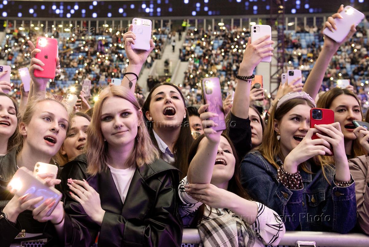 Фестиваль "Петровские ассамблеи 2.0" на стадионе "Газпром Арена". Певец Ваня Дмитриенко во время выступления на фестивале.