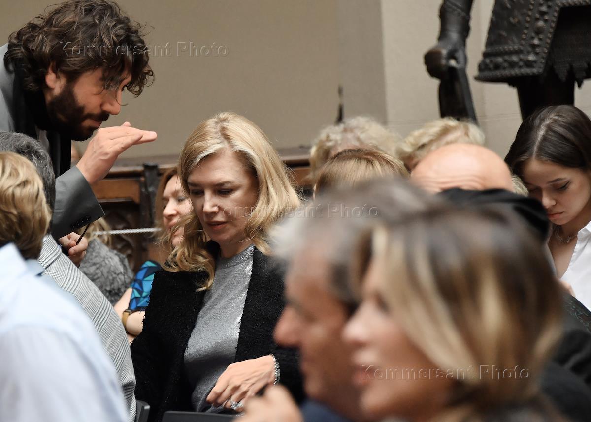 Celebration of the 110th anniversary of the Pushkin State Museum of Fine Arts. MusicAeterna choir performance at the celebration. Italian Ambassador to Russia Giorgio Starace (left) and his wife Matilda Starace (center) before the performance.