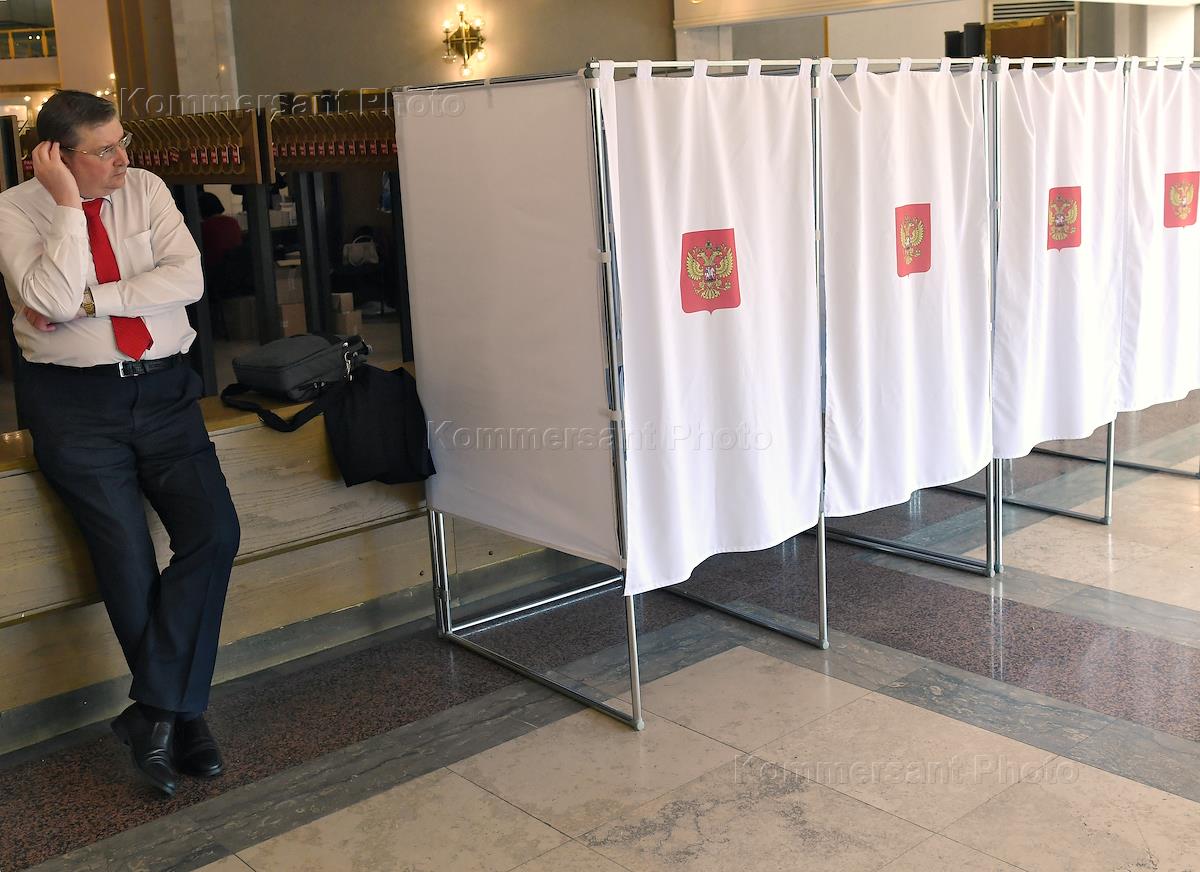 Выборы академиков Российской академии наук (РАН) и членов-корреспондентов РАН в Российской Академии Наук. Жанровая фотография. Кабины для голосования для участников выборов.