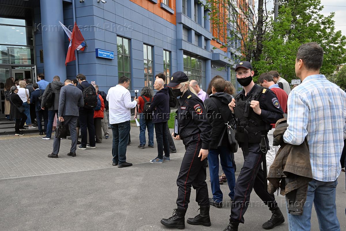 Meeting on the case of municipal deputy Alexei Gorinov, accused of spreading fakes by a "group of persons" "by prior agreement" and "motivated by political hatred", in the Meshchansky District Court. The situation at the courthouse.