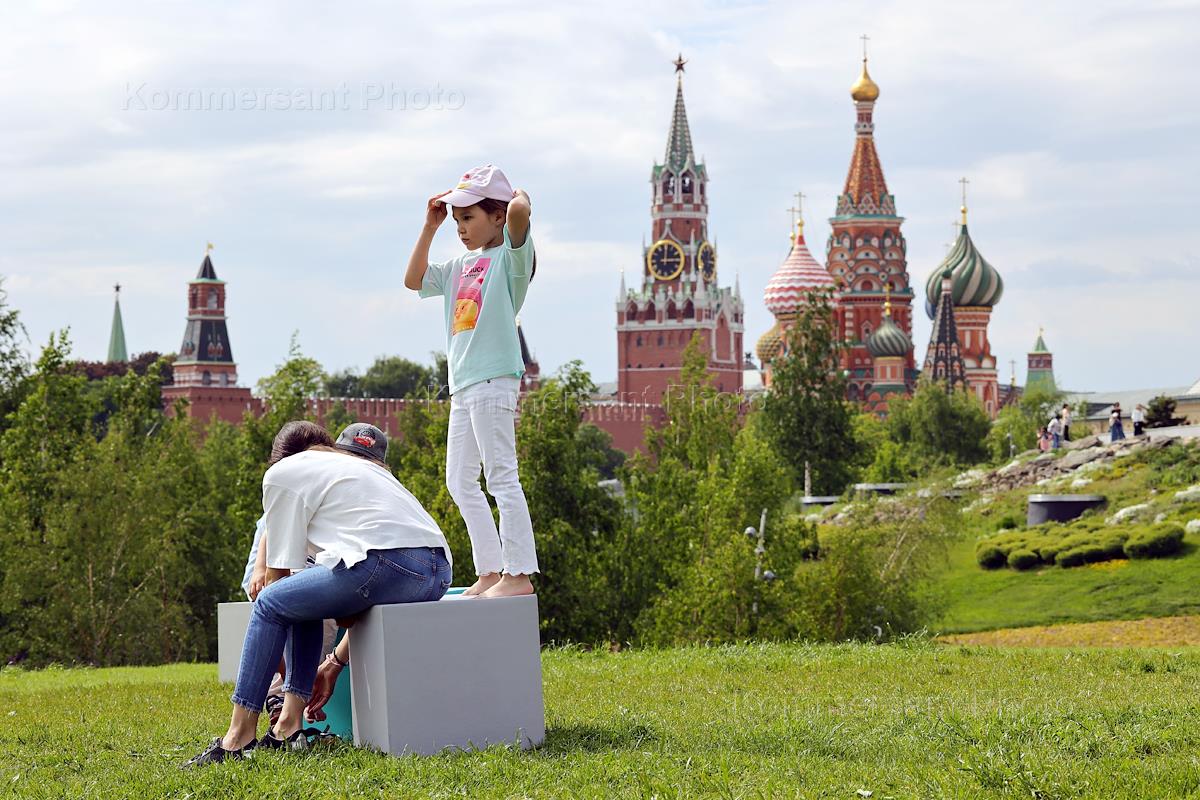 Международный день защиты детей. Большой фестиваль школ искусств в ландшафтном парке "Зарядье". Жанровая фотография. Отдыхающие в парке во время фестиваля.