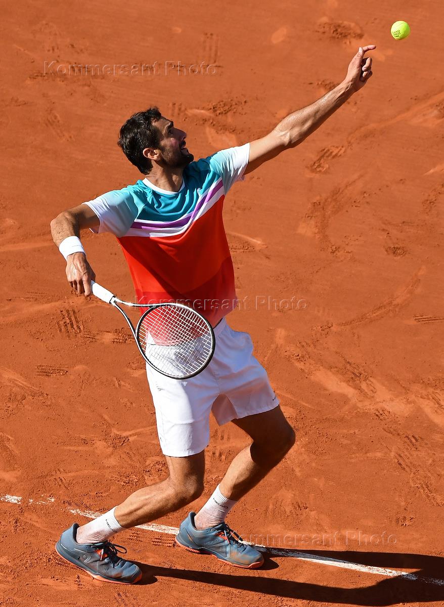 French Tennis Championship "Roland Garros" 2022. 1/4 finals. Croatian tennis player Marin Cilic during a match with Russian tennis player Andrey Rublev.