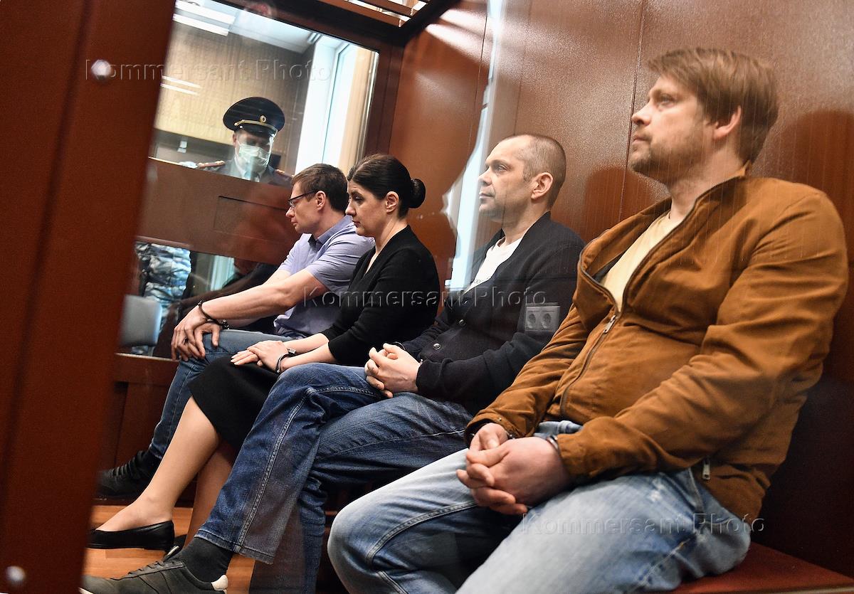 The announcement of the verdict for the former Deputy Minister of Science and Higher Education (Ministry of Education and Science) of Russia Marina Lukashevich and three other defendants in the case, accused of major fraud, in the Meshchansky District Court. From left to right: Artemy Rozhkov, former manager of the department of state policy in the field of higher education and youth policy of the Ministry of Education and Science of Russia, Marina Lukashevich, former deputy minister of education and science of Russia, Mikhail Popov, head of the Department for the implementation of projects in the field of education and science (Rossotrudnichestvo), and businessman Nikolai Popov during a meeting court.
