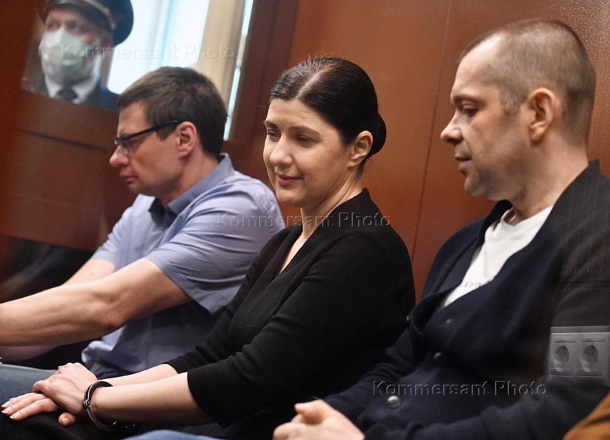 Оглашение приговора бывшему заместителю министра науки и высшего образования (Минобрнауки) России Марине Лукашевич и трем другим фигурантам дела, обвиняемым в крупном мошенничестве, в Мещанском районном суде. Слева направо: бывший директор департамента госполитики в сфере высшего образования и молодежной политики Минобрнауки России Артемий Рожков, бывший заместитель министра науки и высшего образования России Марина Лукашевич, бывший начальник управления реализации программ в сфере науки и образования Россотрудничества Михаил Попов во время заседания суда.