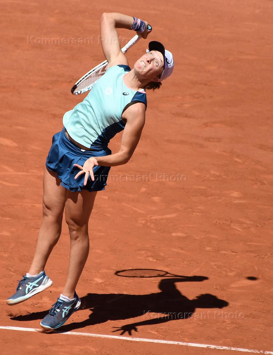 French Tennis Championship "Roland Garros" 2022. Semi-finals in women's singles. Russian tennis player Darya Kasatkina during a match with Polish tennis player Iga Swiatek.