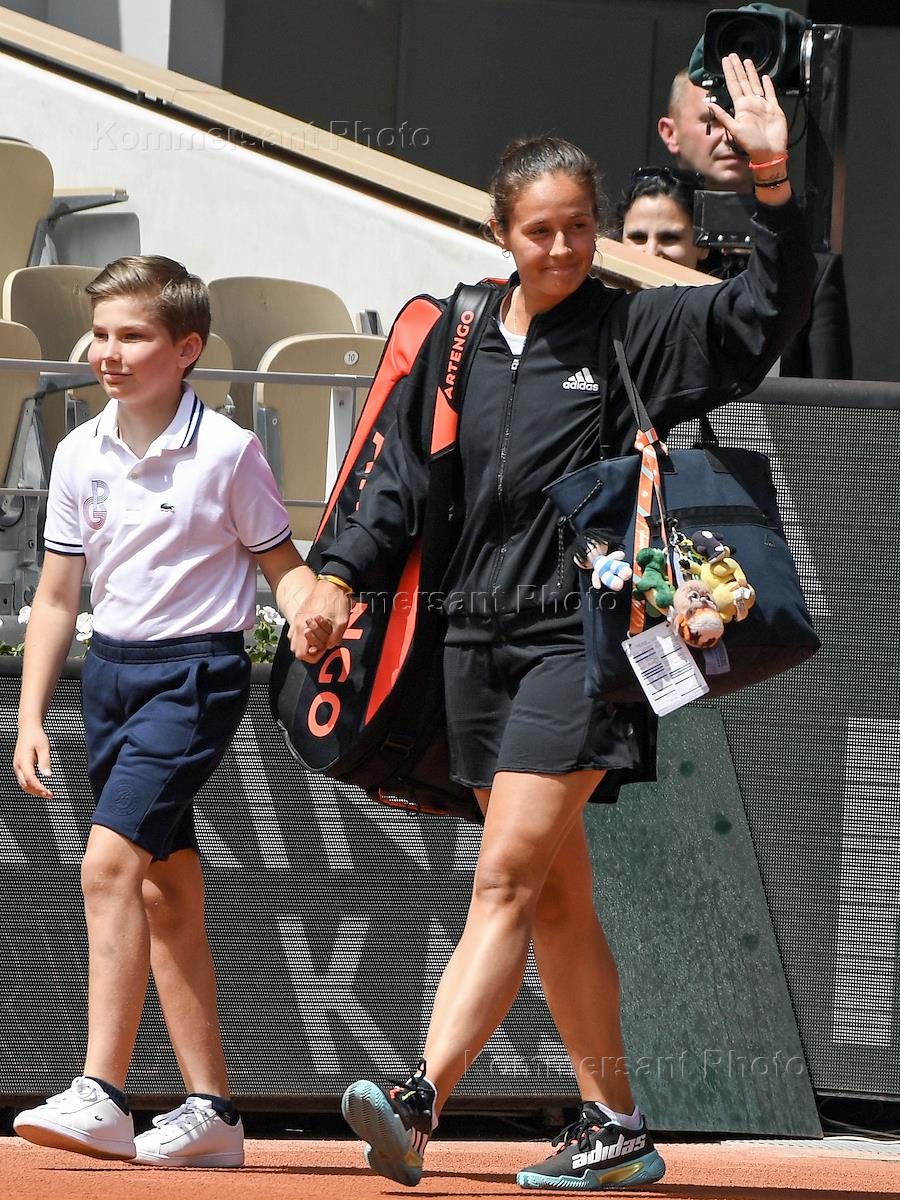 Чемпионат Франции по теннису "Ролан Гаррос" 2022 (Roland Garros 2022). Полуфиналы в женских одиночных разрядах. Российская теннисистка Дарья Касаткина перед началом матча с польской теннисисткой Игой Швентек.