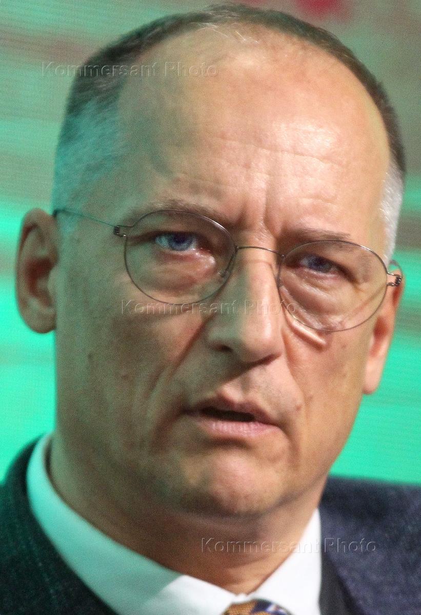 Conference for global dialogue and cooperation between the state and business on the development of the digital economy. CEO, Chairman of the Board of JSC "Rosgeologia" Sergei Gorkov (left) and Chairman of the Volga-Vyatka Bank of PJSC "Sberbank" Pyotr Koltypin at the conference.