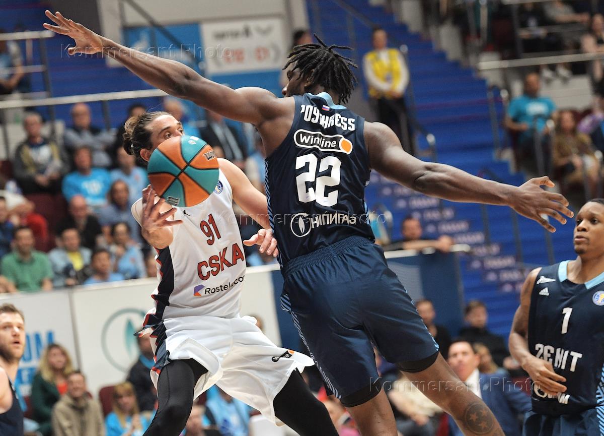 VTB United Basketball League. The final. Match between the teams of CSKA (Moscow) - "Zenit" (St. Petersburg) at the stadium "SIBUR Arena" in St. Petersburg. Zenit team player Alex Poythress (right) during the match.