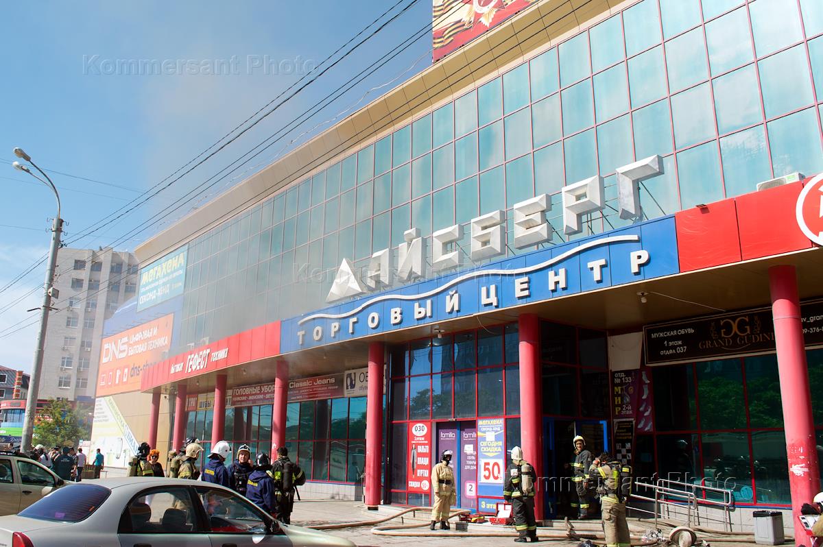 Пожар в торговом центре "Айсберг". Сотрудники пожарной службы МЧС у торгового центра.