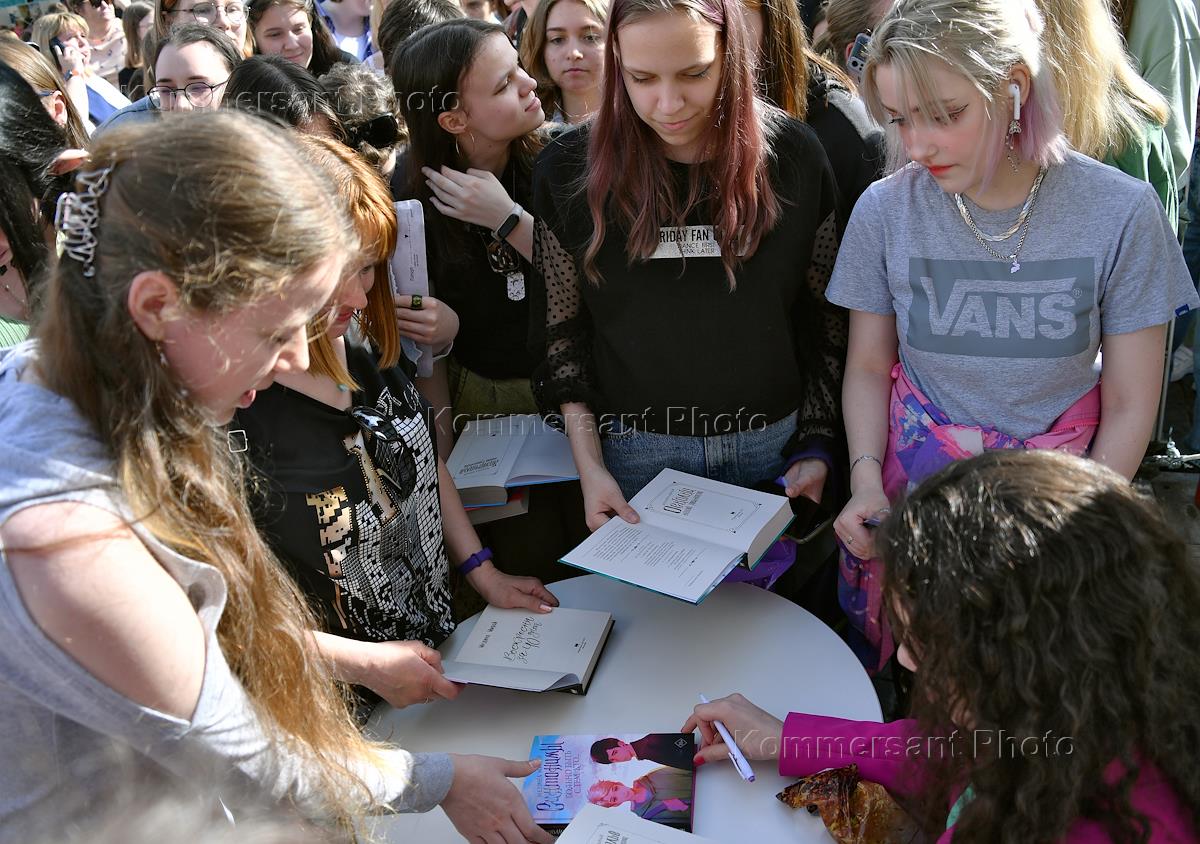 VIII annual book festival "Red Square". Test cosmonaut-instructor of the Yuri Gagarin Research Cosmonaut Training Center Anton Shkaplerov (center) at the festival.