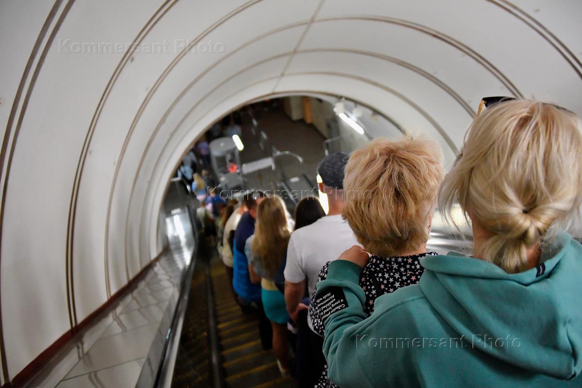 Жанровая фотография. Пассажиры на эскалаторе метрополитена.
