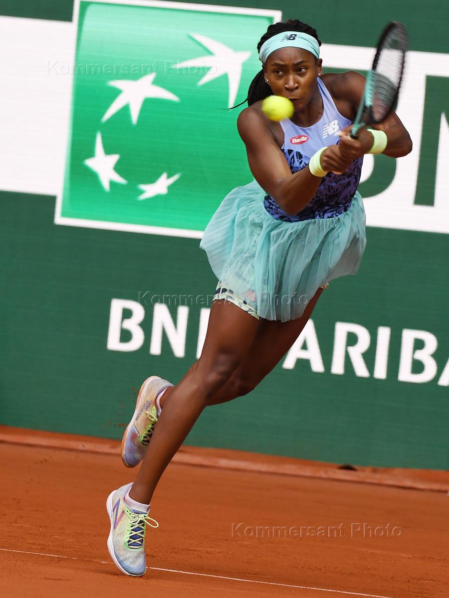 French Tennis Championship "Roland Garros" 2022. Women's singles final. American tennis player Cori Gauff during a match with Polish tennis player Iga Swiatek. Cori Gauff, American tennis player.