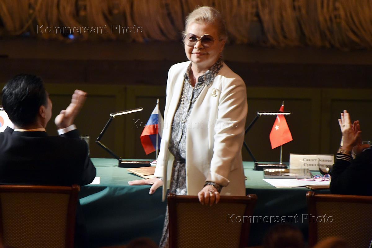XIV International competition of ballet dancers and choreographers on the new stage of the State Academic Bolshoi Theater (SABT). First tour. Member of the jury, head of the choreography department at Tongji University, ex-premier of the Royal Ballet of London Shi Ning Liu before the start of competitive screenings.