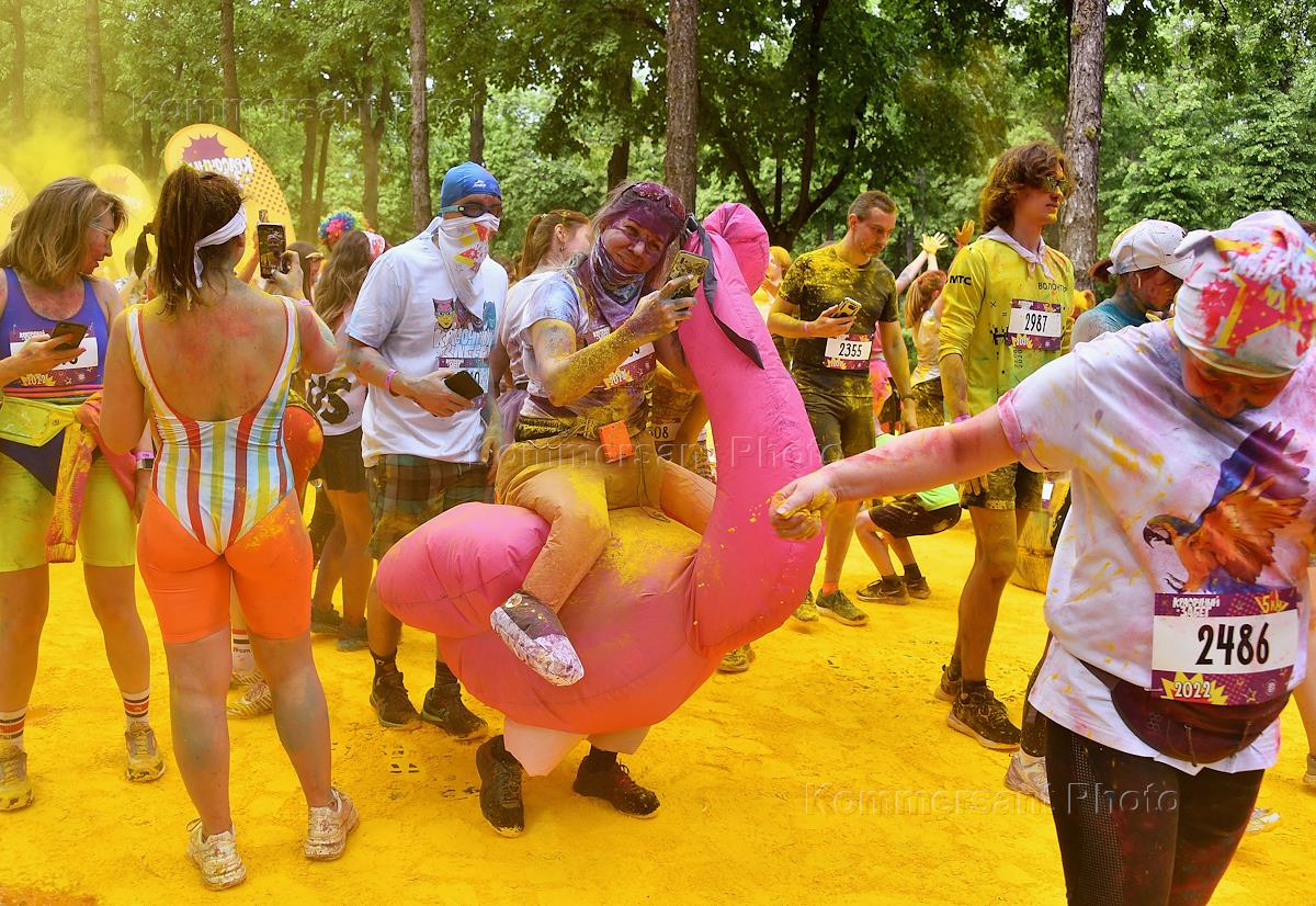 "Красочный забег" вокруг территории Олимпийского комплекса "Лужники". Участник во время забега.