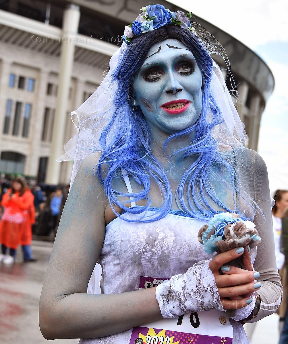 "Красочный забег" вокруг территории Олимпийского комплекса "Лужники". Участница перед началом забега.
