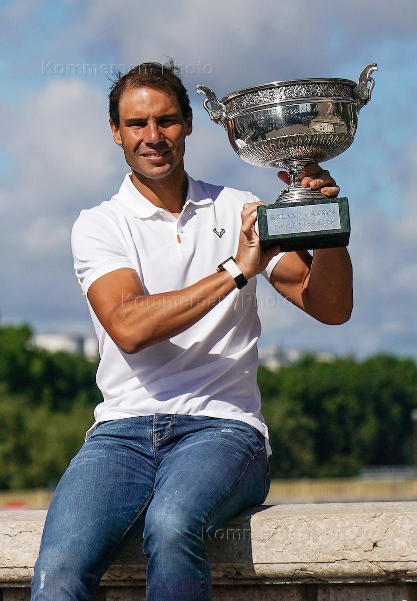 Теннисный турнир "Ролан Гаррос 2022" (Roland-Garros). Испанский теннисист Рафаэль Надаль во время фотосессии после победы в мужском одиночном разряде турнира.