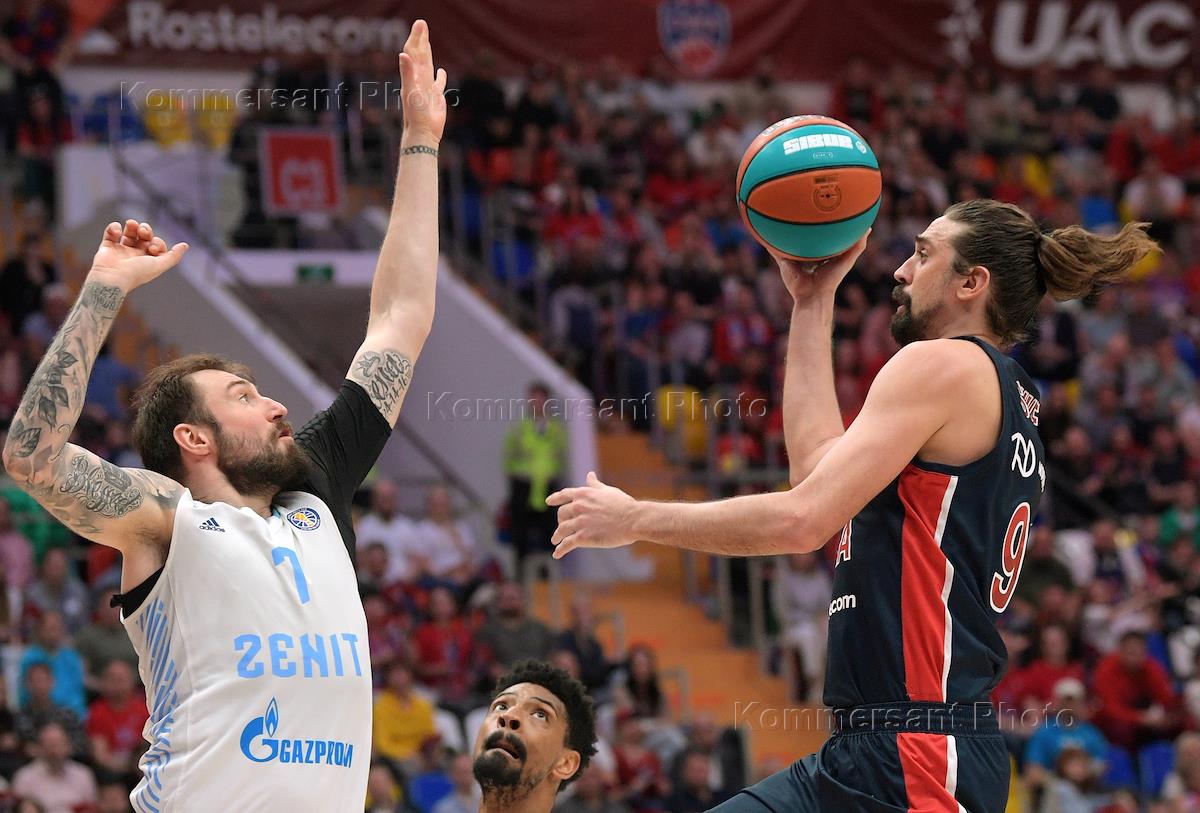 VTB United Basketball League. The final. Match between the teams of CSKA (Moscow) - "Zenit" (St. Petersburg) at the stadium "Megasport". Zenit team player Sergei Karasev (left) during a match.