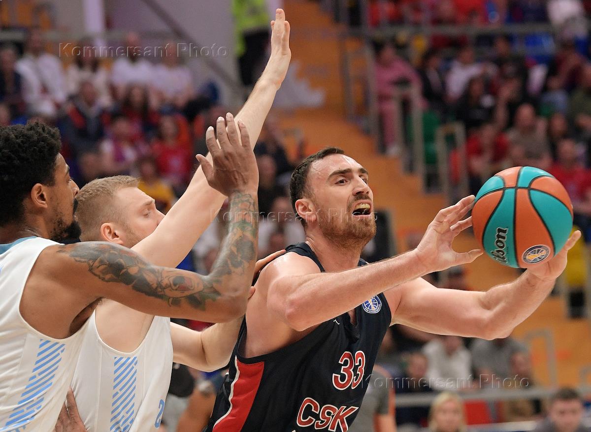 VTB United Basketball League. The final. Match between the teams of CSKA (Moscow) - "Zenit" (St. Petersburg) at the stadium "Megasport". CSKA team player Nikita Kurbanov (right) during the match.