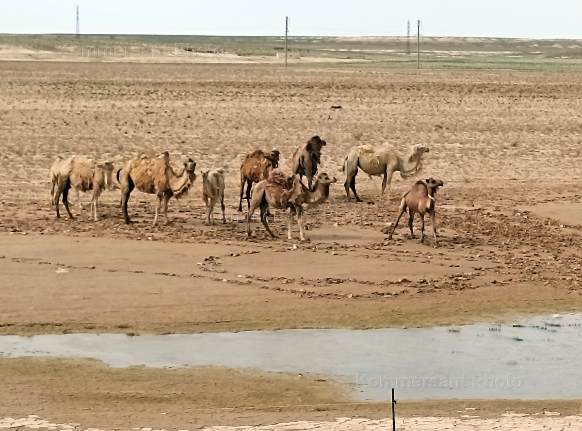 Views of Kazakhstan. Genre photography. Camels on the field.