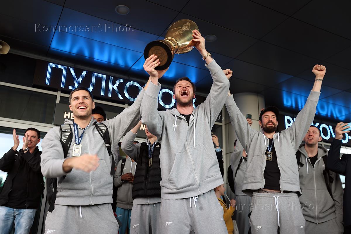 Церемония встречи победителей чемпионата по баскетболу Единой лиги ВТБ команды "Зенит" (Санкт-Петербург) в аэропорту "Пулково".
