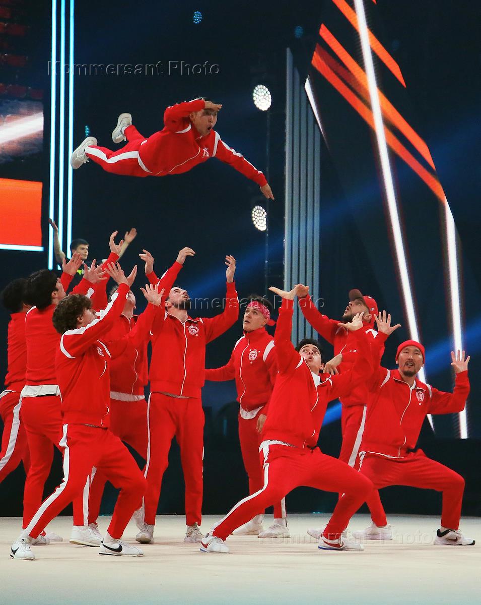 The show of the Olympic champion in gymnastics, the first deputy head of CSKA Svetlana Khorkina "Ascension" in the Yubileiny sports complex. Show participant gymnast Sergei Yelshov during a performance.