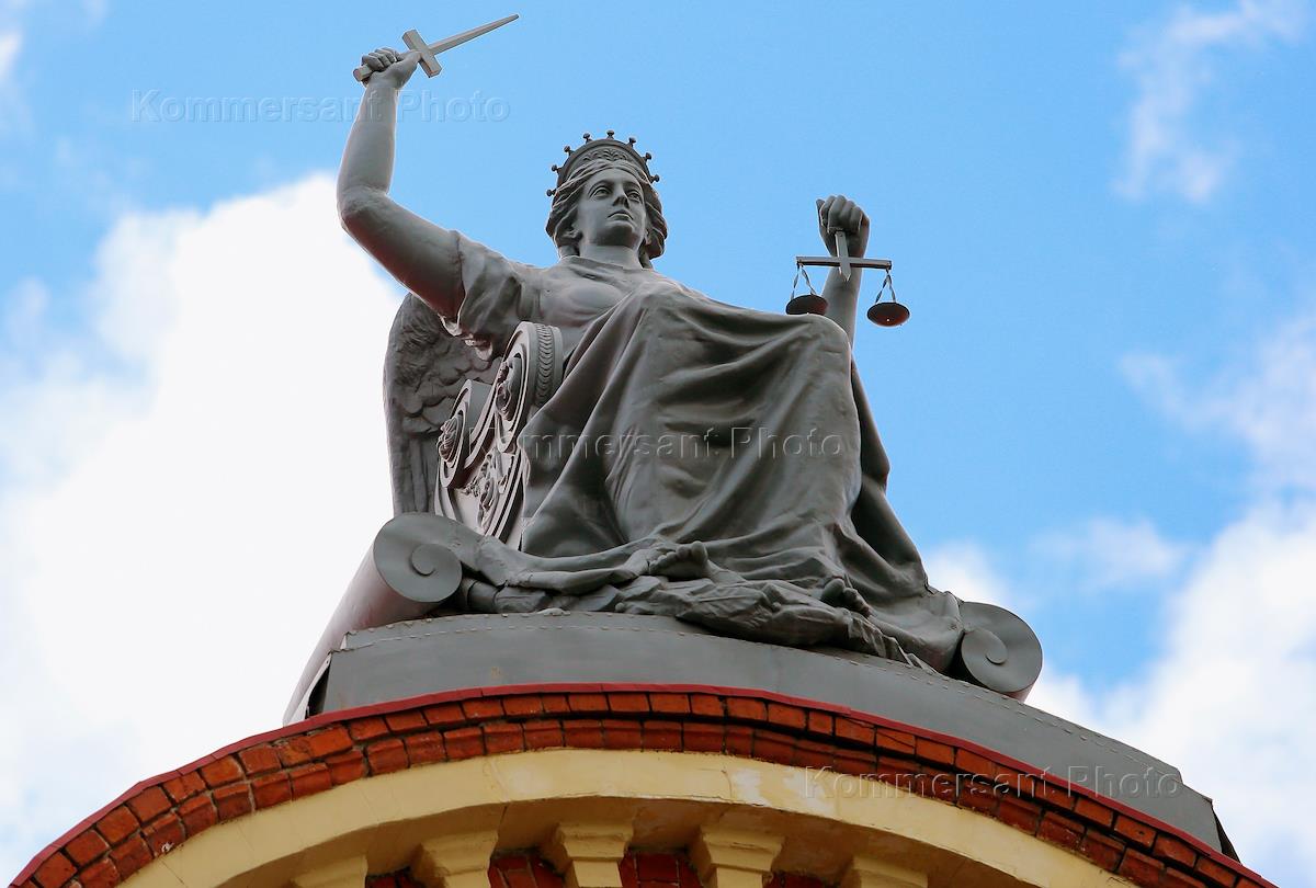 Views of Tomsk. Genre photography. Sculpture of the goddess of justice on the building of the Tomsk Regional Court.