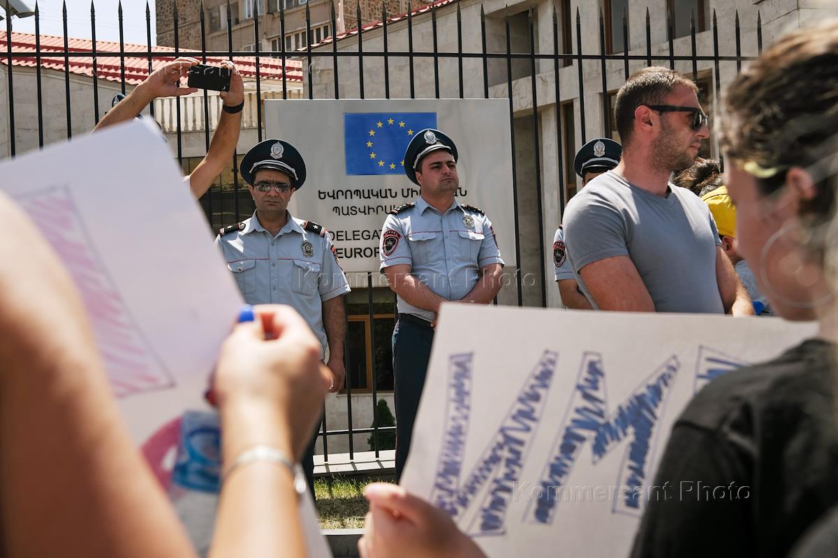 Митинг у здания представительства Евросоюза с требованием дать оценку действиям полиции, которая использовала спецсредства против демонстрантов 3 июня.