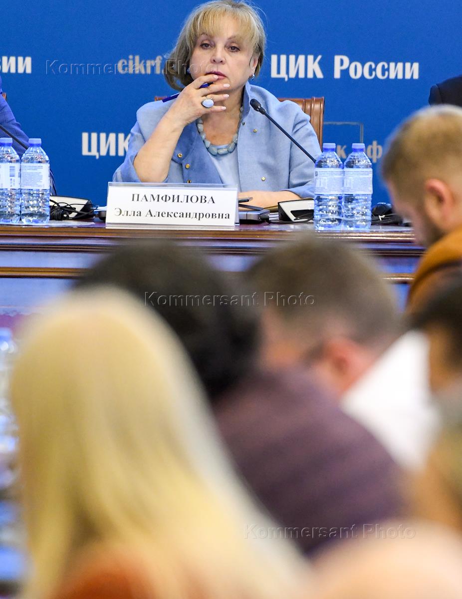 Заседание Центральной избирательной комиссии (ЦИК) России в зале заседаний ЦИК России. Председатель ЦМК России Элла Памфилова во время заседания.