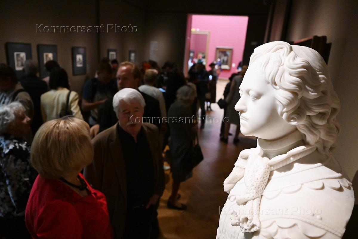 Press preview of the exhibition "Peter the Great. The Mustache of the Ruler", dedicated to the 350th anniversary of the birth of Peter I, in the State Tretyakov Gallery. Head of the Department of Culture of the City of Moscow Alexander Kibovsky at the exhibition.