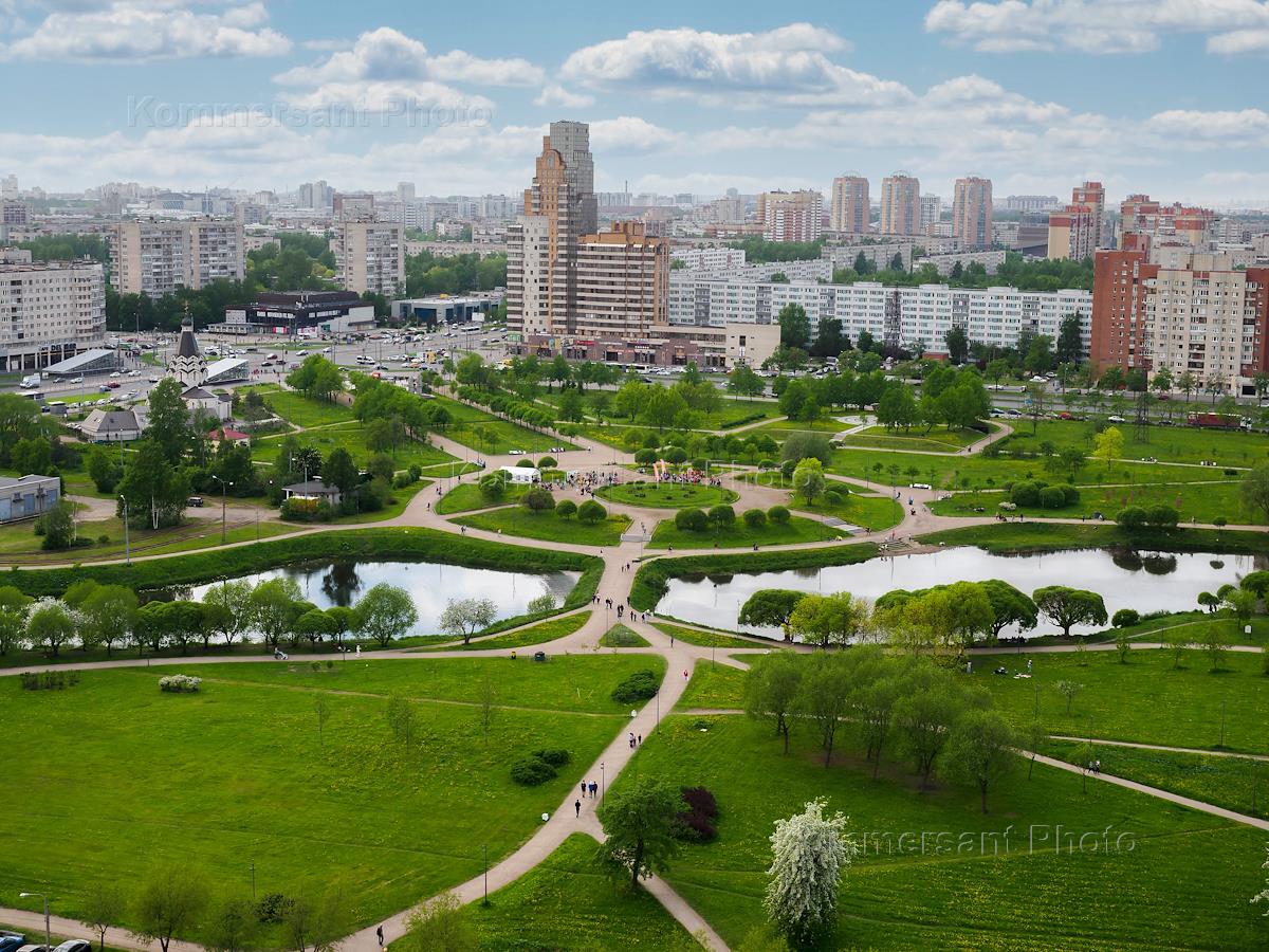 Виды Санкт-Петербурга. Купчино. Парк Интернационалистов на пересечении проспекта Славы и Бухарестской улицы.