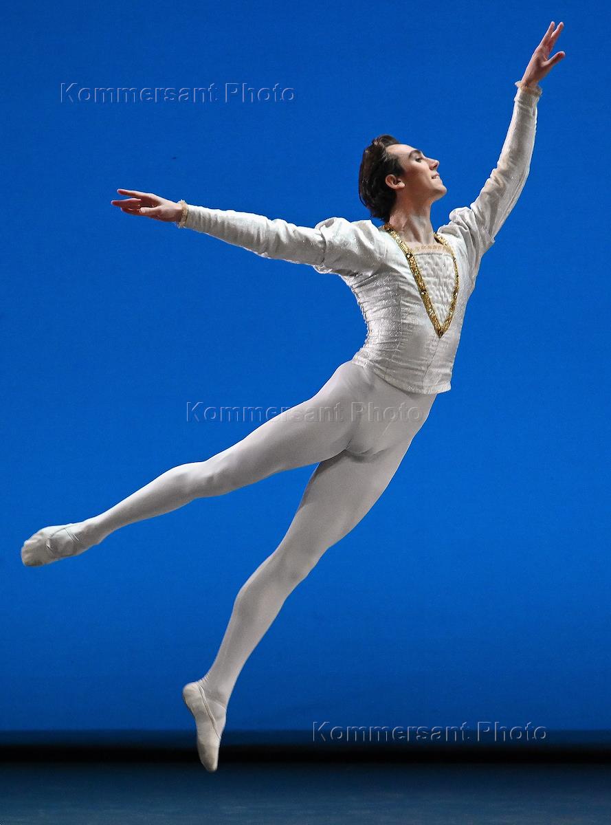 XIV International competition of ballet dancers and choreographers on the new stage of the State Academic Bolshoi Theater (SABT). Second round, senior group. Ballet dancer of the Mariinsky Theater Ruslan Stenyushkin during a performance.