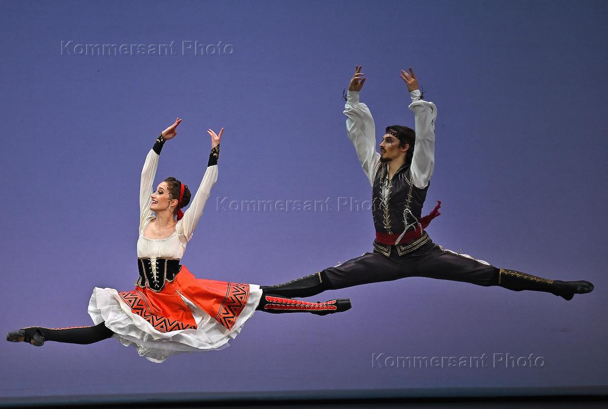 XIV International competition of ballet dancers and choreographers on the new stage of the State Academic Bolshoi Theater (SABT). Second round, senior group. Ballet dancers of the Musical Theatre. K.S. Stanislavsky and Vl.I. Nemirovich-Danchenko Ksenia Abdulkarimova and Georgy Stelmakh during a performance.