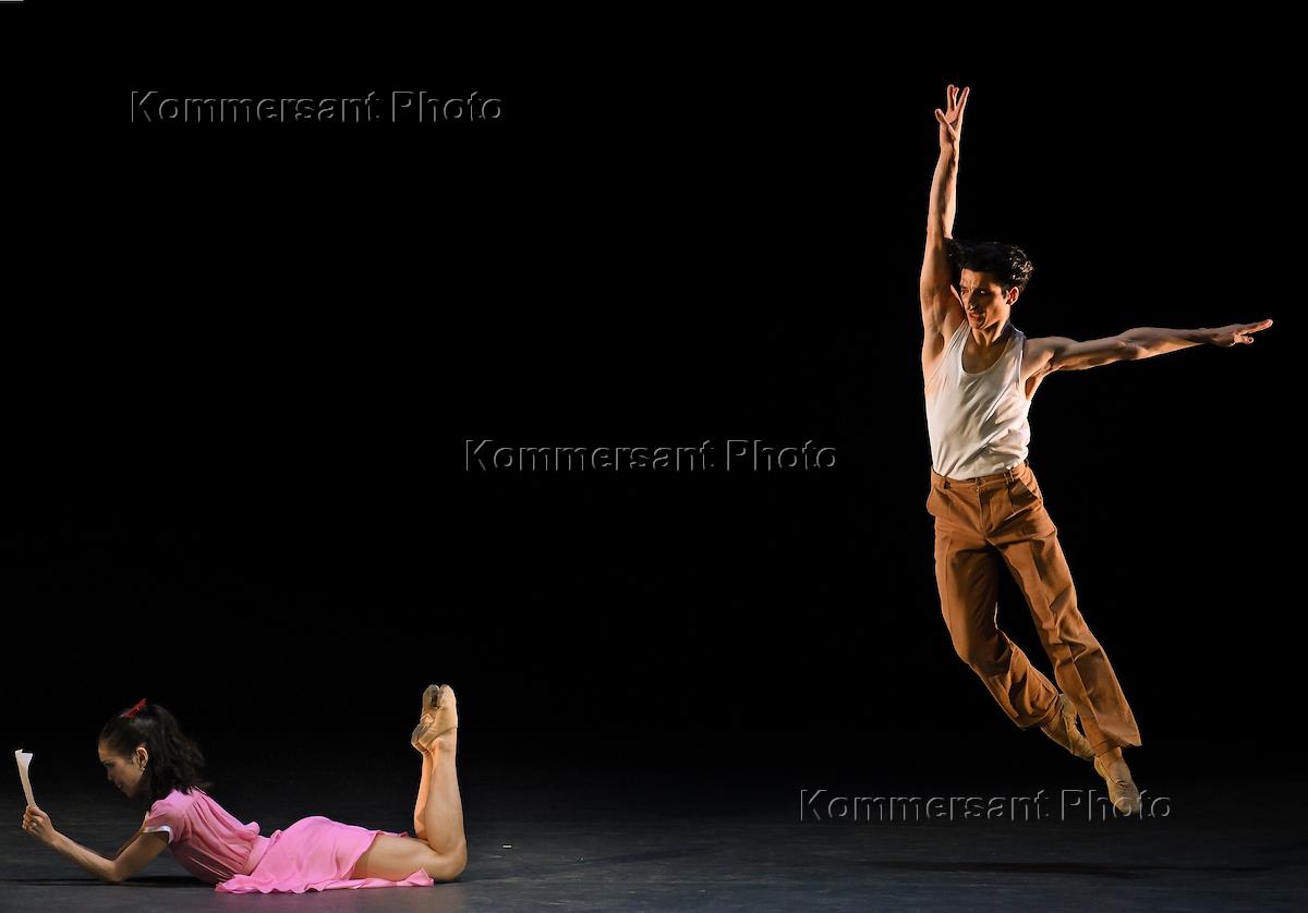 XIV International competition of ballet dancers and choreographers on the new stage of the State Academic Bolshoi Theater (SABT). Second round, senior group. Ballet dancers of the Musical Theatre. K.S. Stanislavsky and Vl.I. Nemirovich-Danchenko Ksenia Abdulkarimova and Georgy Stelmakh during a performance.