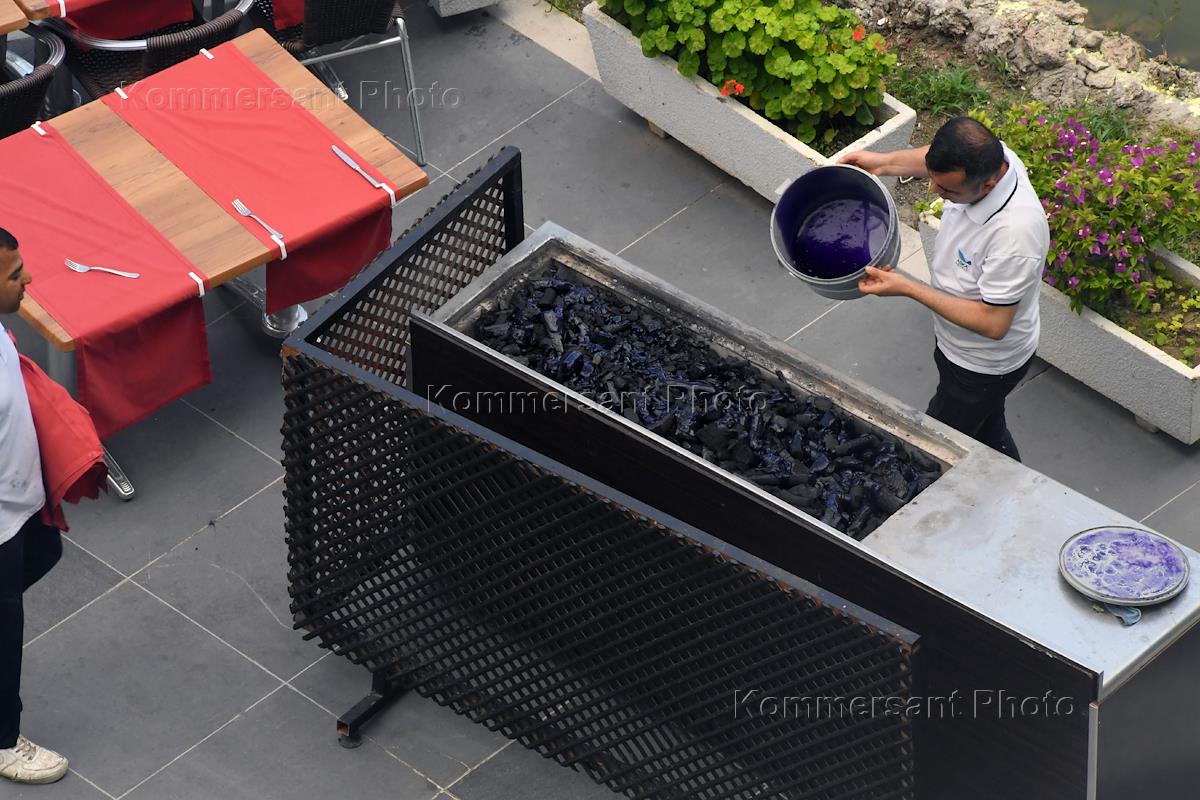 Жанровая фотография. Повар во время приготовления углей на мангале.