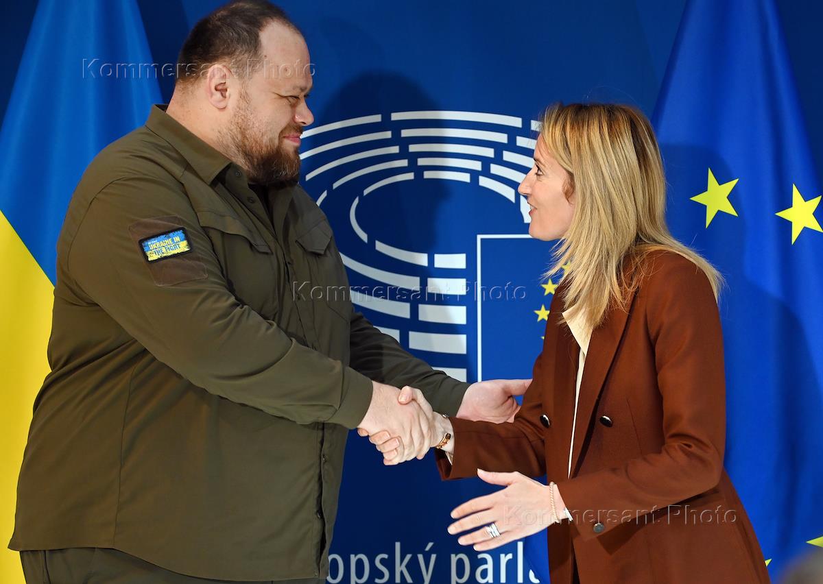 Plenary session of the European Parliament in Strasbourg. President of the European Parliament Roberta Metsola (right) and Speaker of the Verkhovna Rada of Ukraine Ruslan Stefanchuk (left) before the meeting.