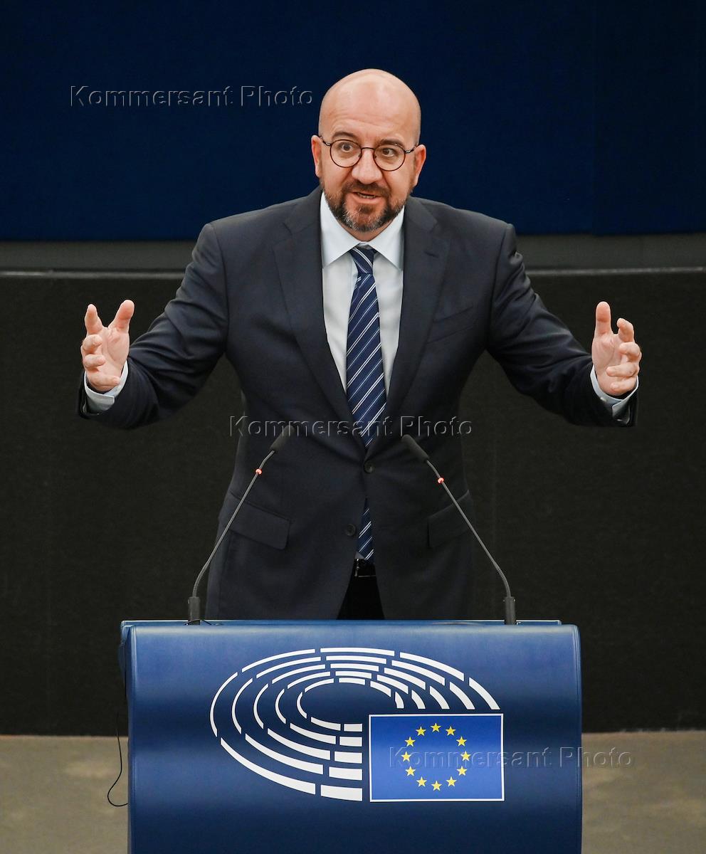 Пленарное заседание Европейского парламента в Страсбурге. Председатель Европейского совета Шарль Мишель во время заседания.