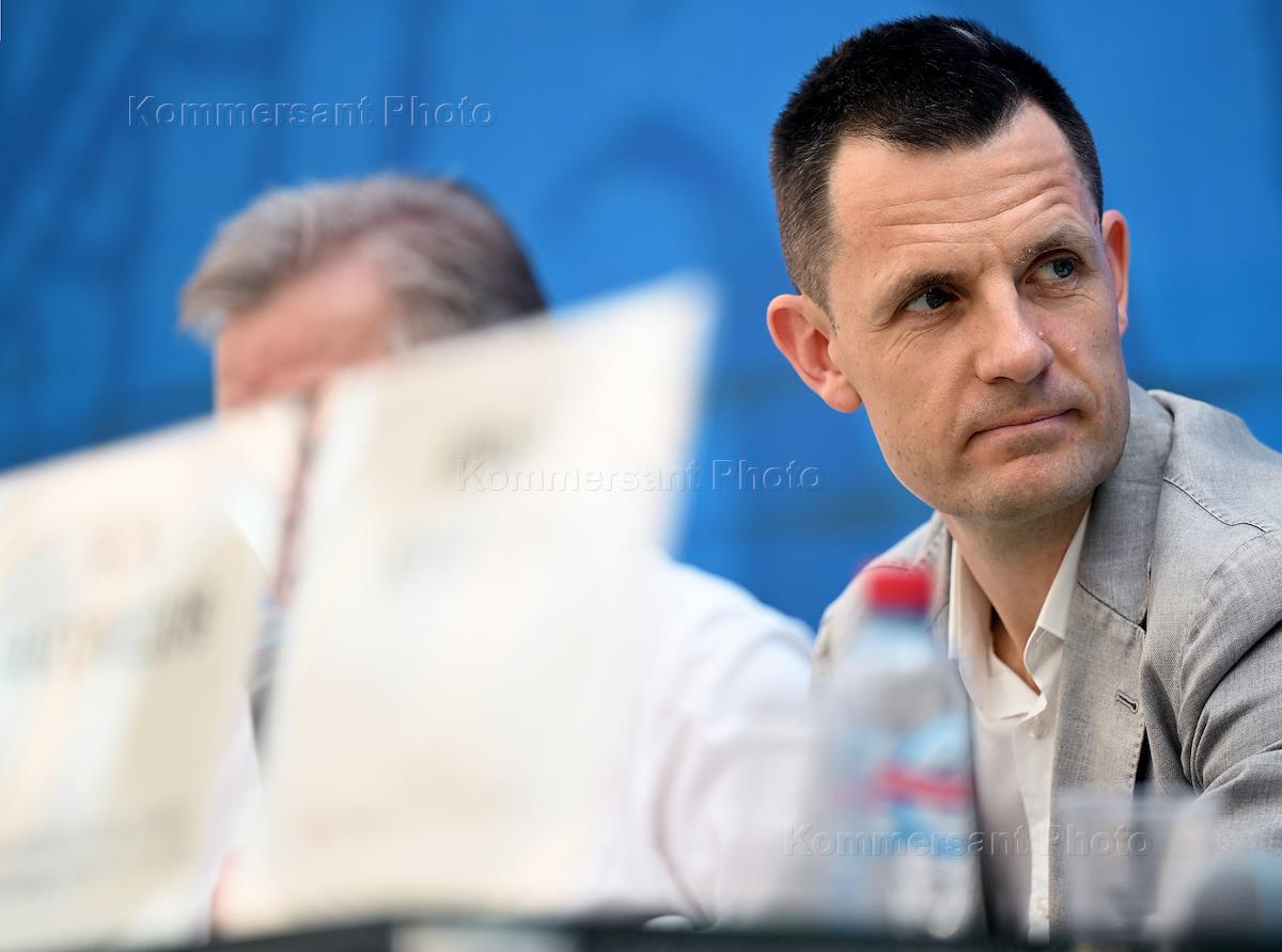 International Exhibition of Architecture and Design "Arch Moscow" in Gostiny Dvor. Vladimir Zhidkin, head of the Moscow New Territories Development Department, at the exhibition.