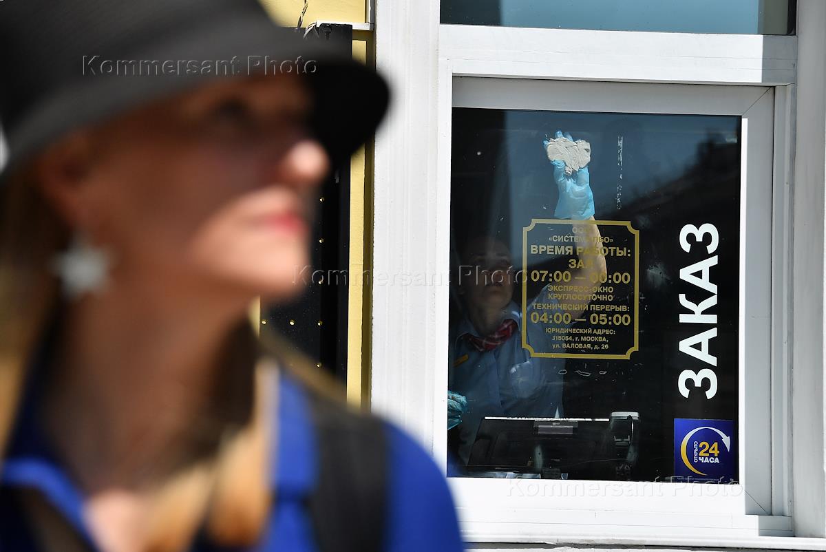 Genre photography An employee of Sistema PBO, renamed from McDonald's LLC, washes the ordering window of a fast food restaurant.