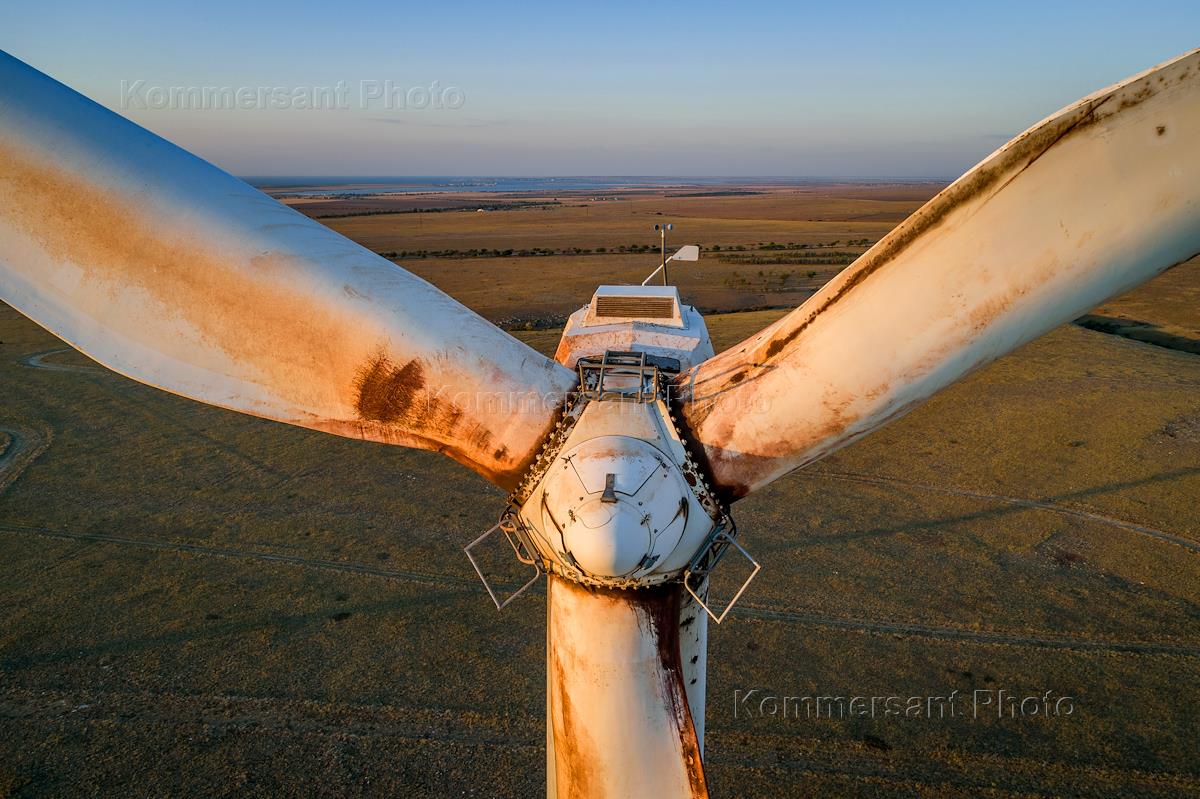 Views of Crimea. Genre photography. Wind turbine blades.