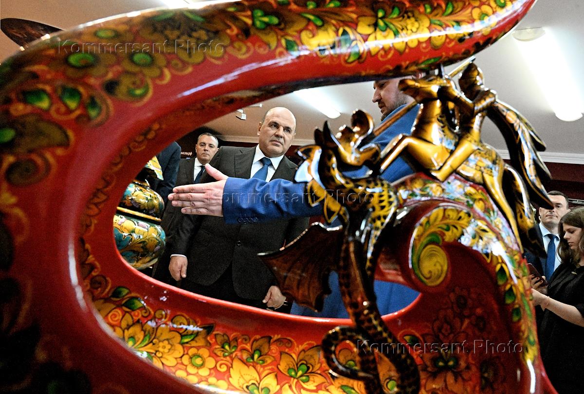 Working trip of Russian Prime Minister Mikhail Mishustin to the village of Zhostovo.